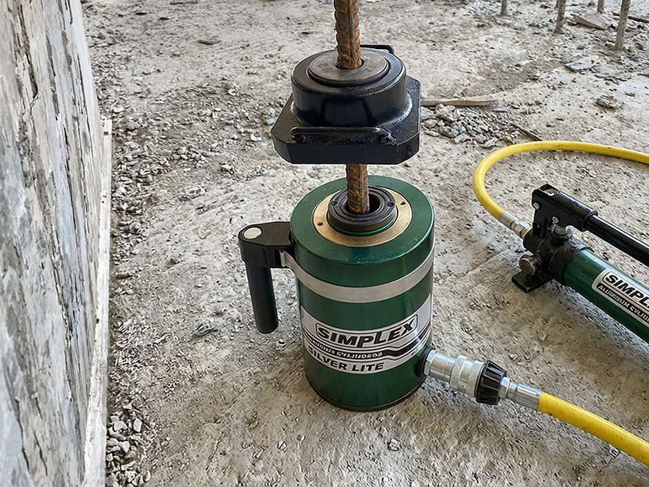 Slide the hydraulic jack and rebar grip over the grouted rebar.